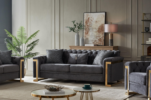 View full detailsThe Sienna Sofa combines modern sophistication with a touch of glamour, featuring a beautiful grey upholstery that exudes elegance. Enhanced with p...